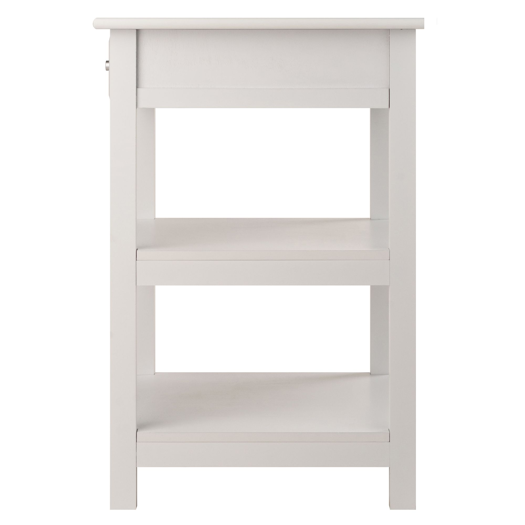 The Winsome Wood Delta Printer Stand is an ideal addition offering a polished look to your workspace or home office. A perfect complement to any decor. Featuring a soft-close drawer with a silver accent pull and two open shelves that provide plenty of storage space. Place a portable printer on the large table top and have plenty of room on the open shelves for reams of paper; file boxes; and more. A printer or fax machine can also go on one of the open shelves; leaving the table top for a lamp or phone. A drawer provides additional storage for smaller office supplies. This table works great as a stand-alone piece or create a relaxed setting by completing your office space with the additional items from the Winsome Delta collection (each sold separately). Constructed of sturdy composite wood in white with a silver accent knob that gives this multifunctional table a handsome; yet understated look. Conveniently packed and shipped in 1 box; that includes the hardware necessary for assembling. Replacement part request can be submitted directly to the manufacturer; with sales receipt; within 60 days from date of purchase.